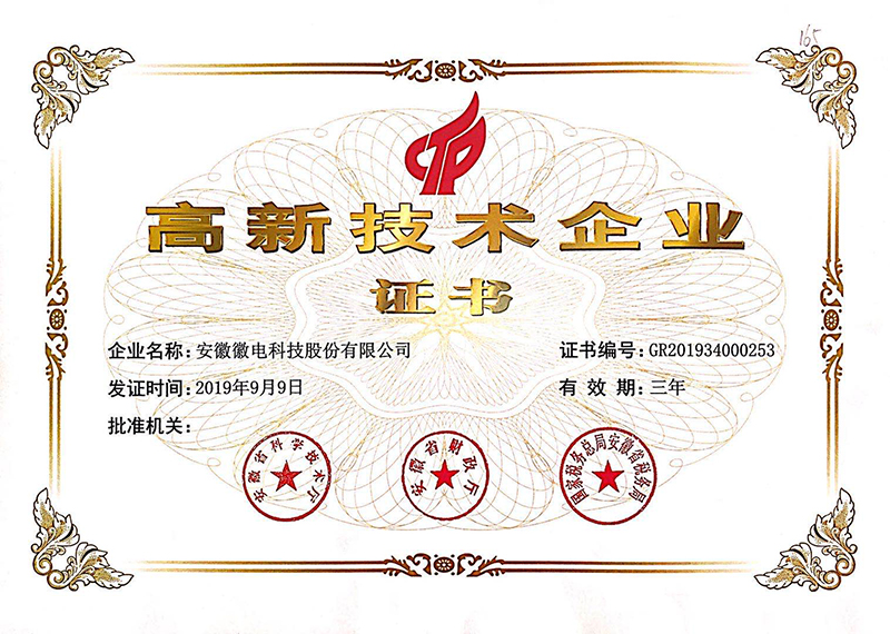 高新技术企业证书